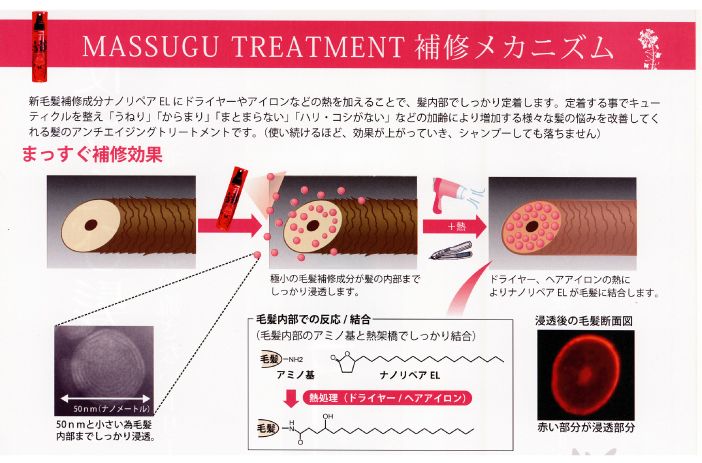 新毛髪補修成分ナノリペアELにドライヤーやアイロンなどの熱を加えることで髪内部で