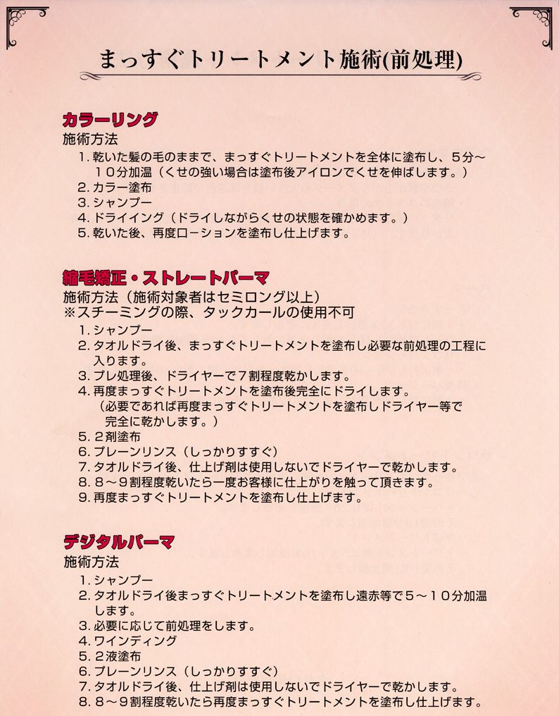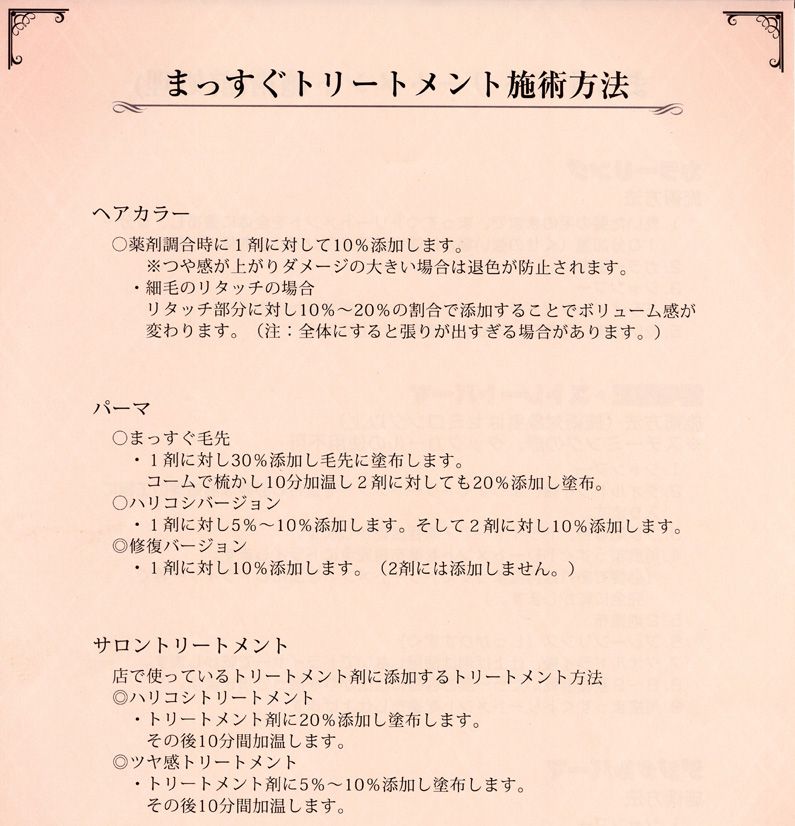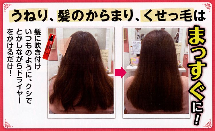 ★仕上がった後、収まりが悪い場合はもう一度2~3プッシュ塗布し、軽くドライヤーをかけて下さい。髪のダメージによってはこの工程を2~3回繰り返していただくとより効果的です。