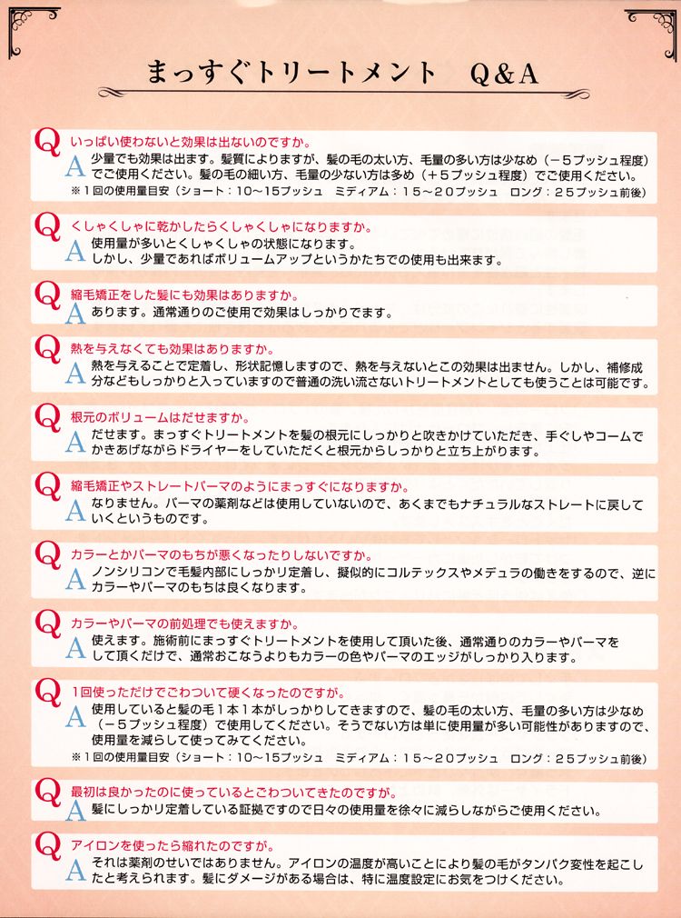 ★セットローションとしてもお使いいただけます。まっすぐトリートメントをつけて乾かした後にカーラーなどでまいて頂くと、セットのもちがよくなります。