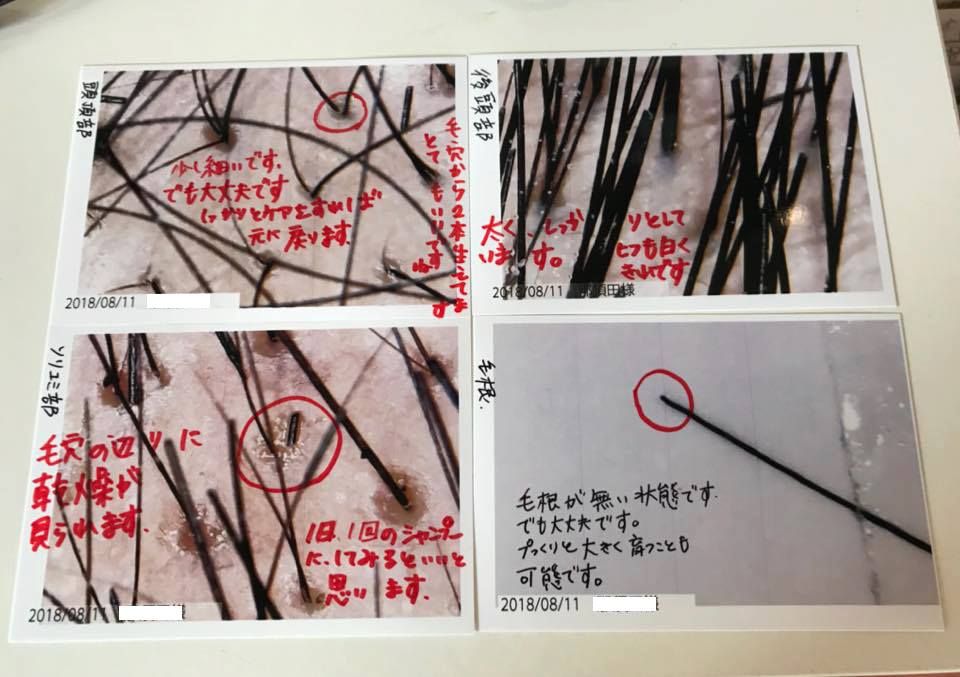 | 毛根カウンセリング | ブラッシングしてブラシについた髪の毛を数本頂きスキャンしてチェックいたします。![]() |